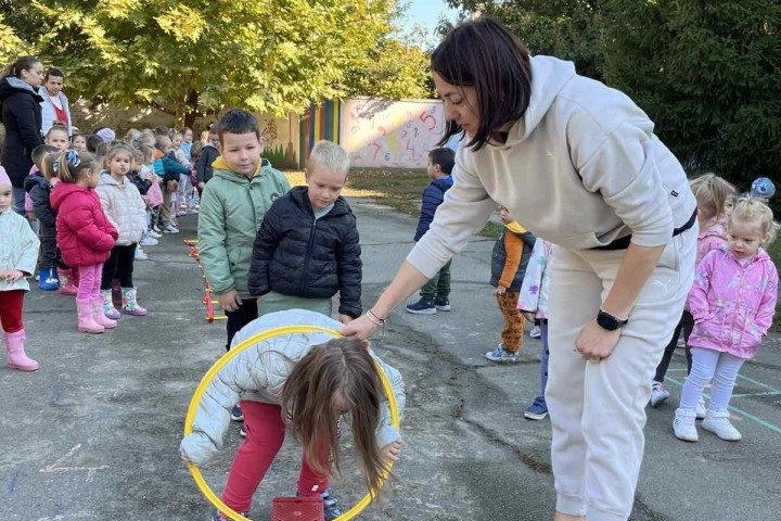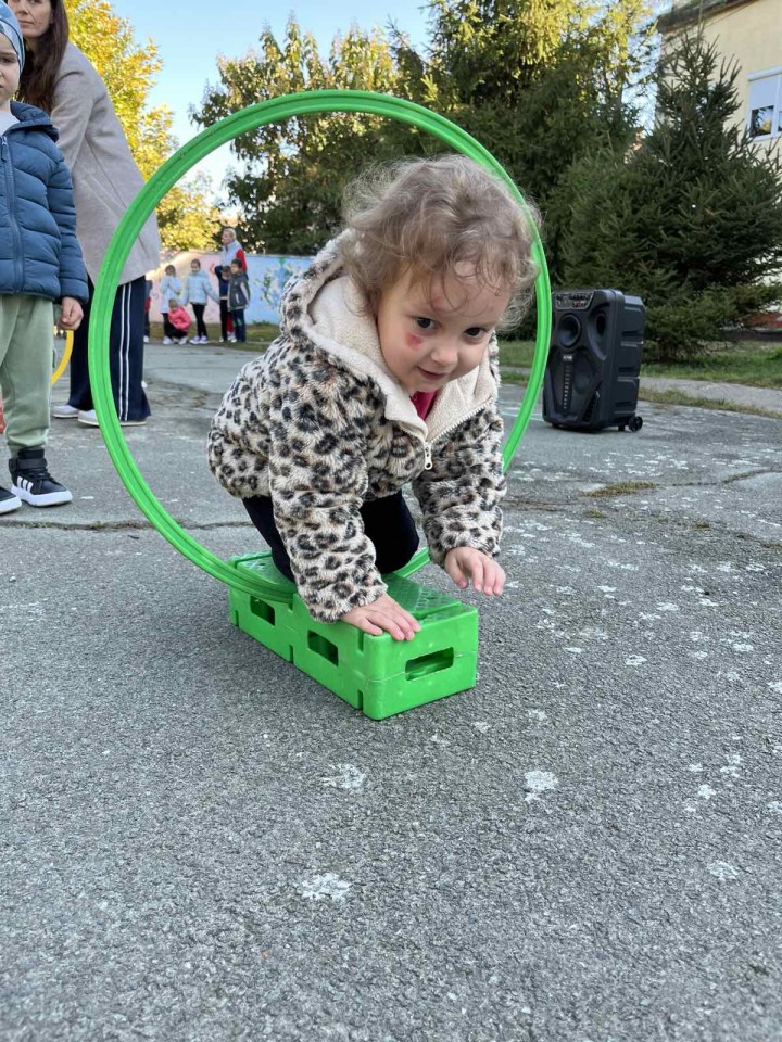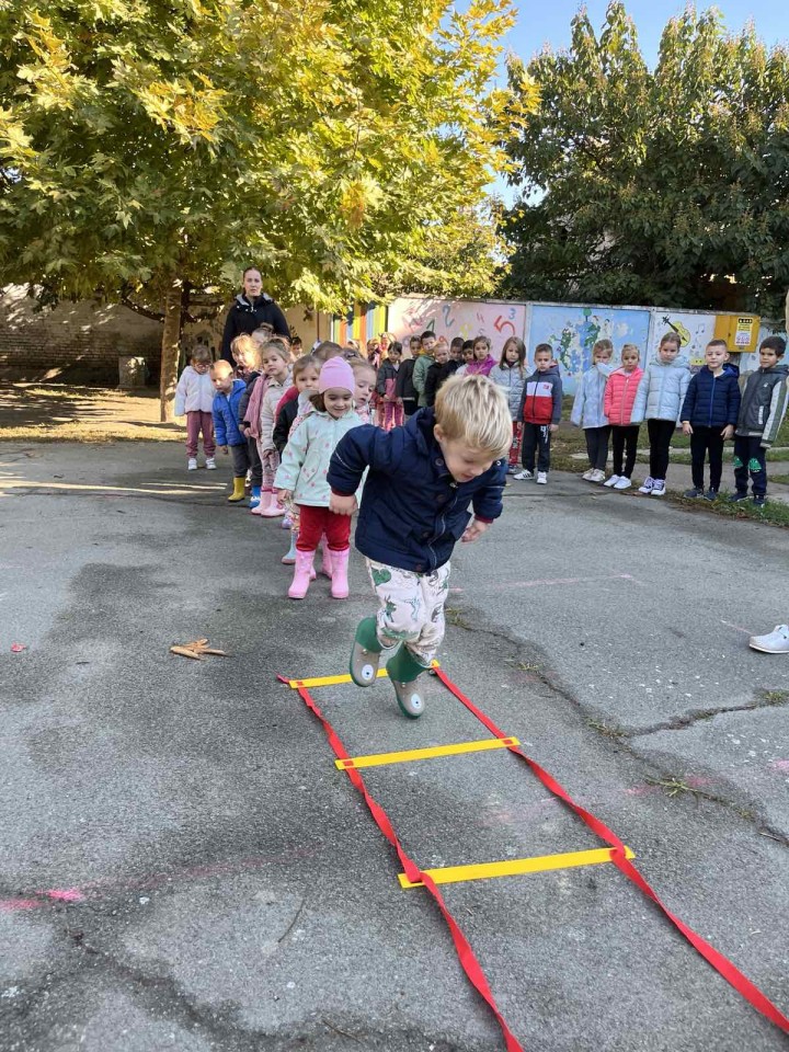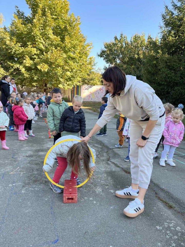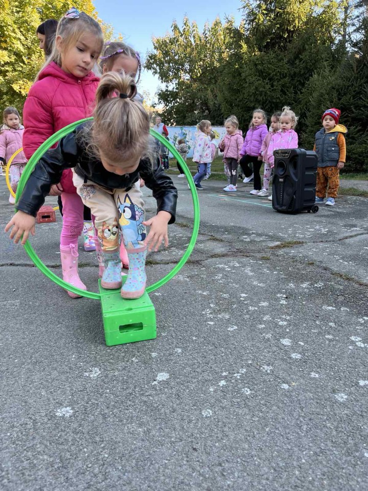 8. октобар 2025.Трећи дан Дечије недеље обележен је у спортском духу. Гост у нашем вртићу била је наставница физичког васпитања Божидарка Дамјановић. Она је поставила полигон, а деца су пажљиво пролазила сваку станицу.